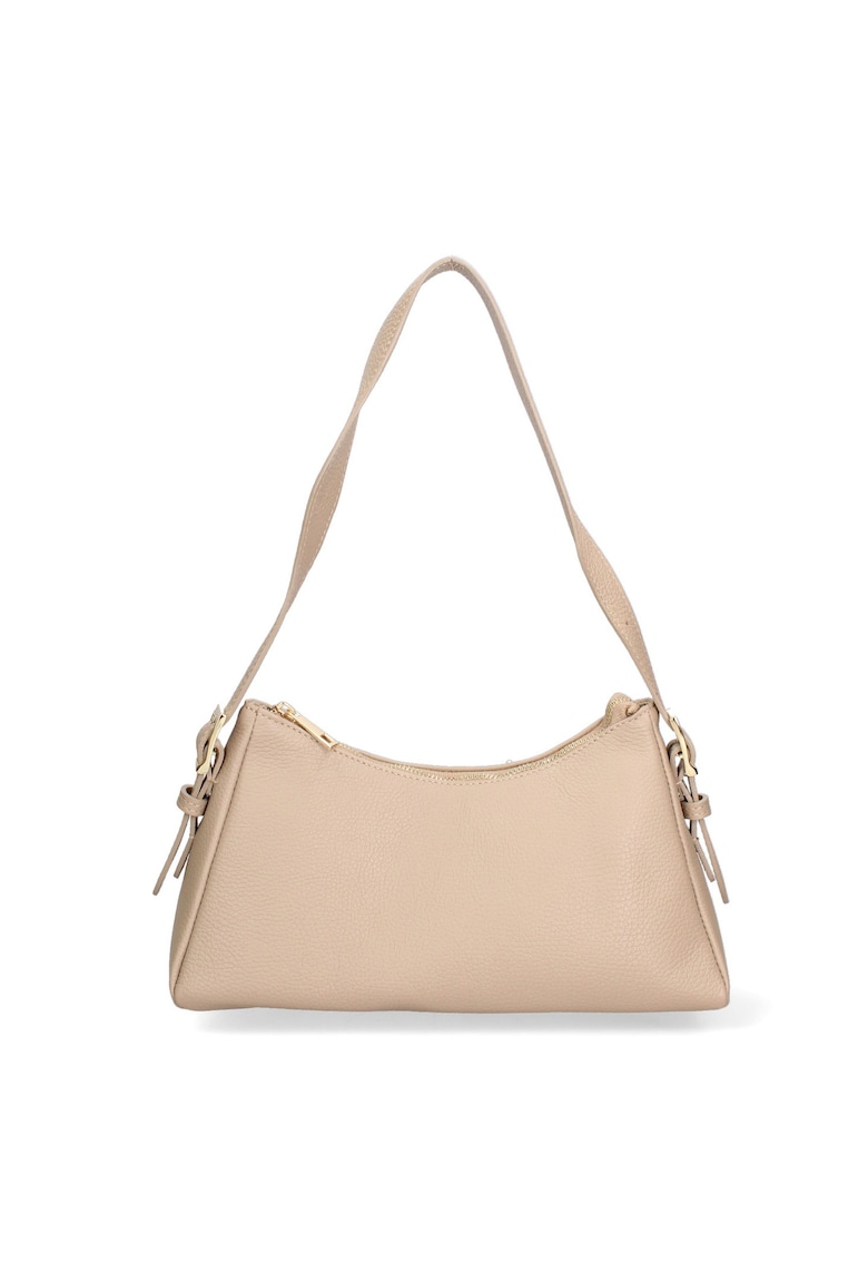 Caracteristici Culoare: maro taupe Material: piele naturala Model: de umar Stil: casual Imprimeu: uni Maner: ajustabile Compartimente: 1 comaprtiment principal Culoare elemente metalice: auriu Sistem inchidere: fermoar Compozitie Exterior: piele Dimensiuni Dimensiune (cm): 17x31x10