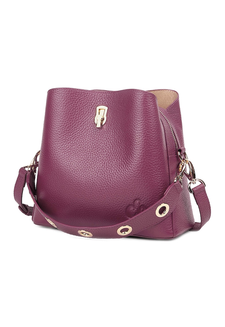 Caracteristici Culoare: roz fandango Material: piele naturala Model: bucket Stil: casual Imprimeu: uni Maner: 1 detasabil Barete: 1 ajustabila si detasabila Buzunare: 2 interioare Compartimente: 1 Culoare elemente metalice: auriu Sistem inchidere: fermoar