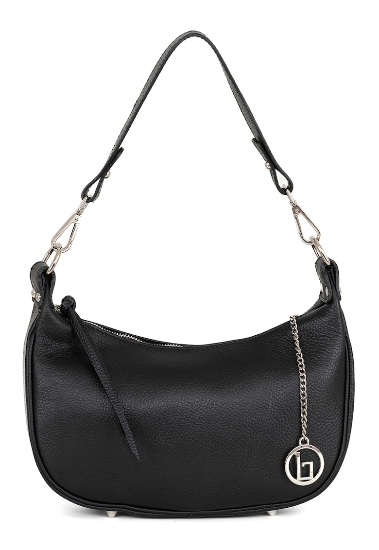 Caracteristici Culoare: negru Material: piele naturala Model: de umar Stil: casual Imprimeu: uni Barete: detasabile Buzunare: interior Compartimente: un compartiment Culoare elemente metalice: argintiu Sistem inchidere: fermoar Compozitie Exterior: piele Captuseala: textil Dimensiuni Dimensiune (cm): 17x30x7