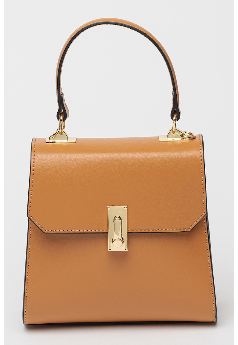 Caracteristici Culoare: camel Material: piele naturala Model: de umar Stil: casual Imprimeu: uni Maner: 1 fix Barete: ajustabile si detasabile Buzunare: interior Compartimente: un compartiment Culoare elemente metalice: auriu Sistem inchidere: sistem metalic