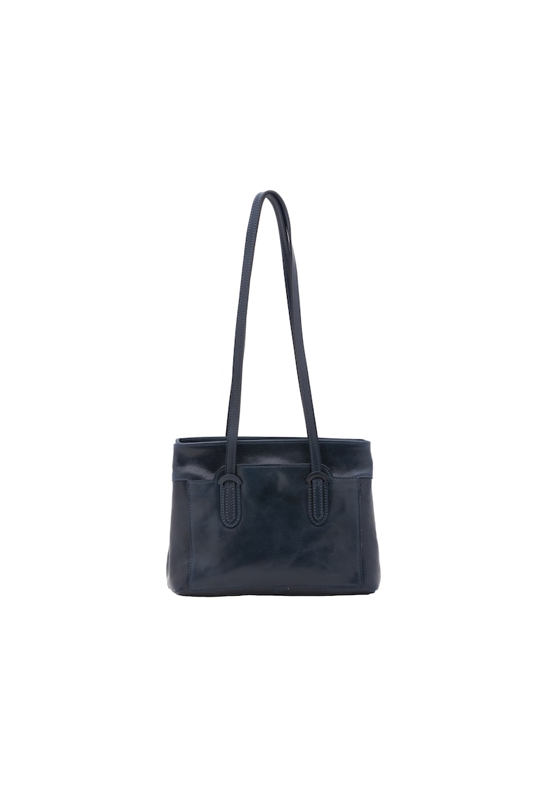 Caracteristici Culoare: albastru Material: piele naturala Model: de umar Stil: casual Imprimeu: uni Barete: doua Buzunare: interioare Compartimente: 2 Culoare elemente metalice: bronz Sistem inchidere: fermoar Compozitie Exterior: piele Captuseala: 100% bumbac Dimensiuni Dimensiune (cm): 23x30x12