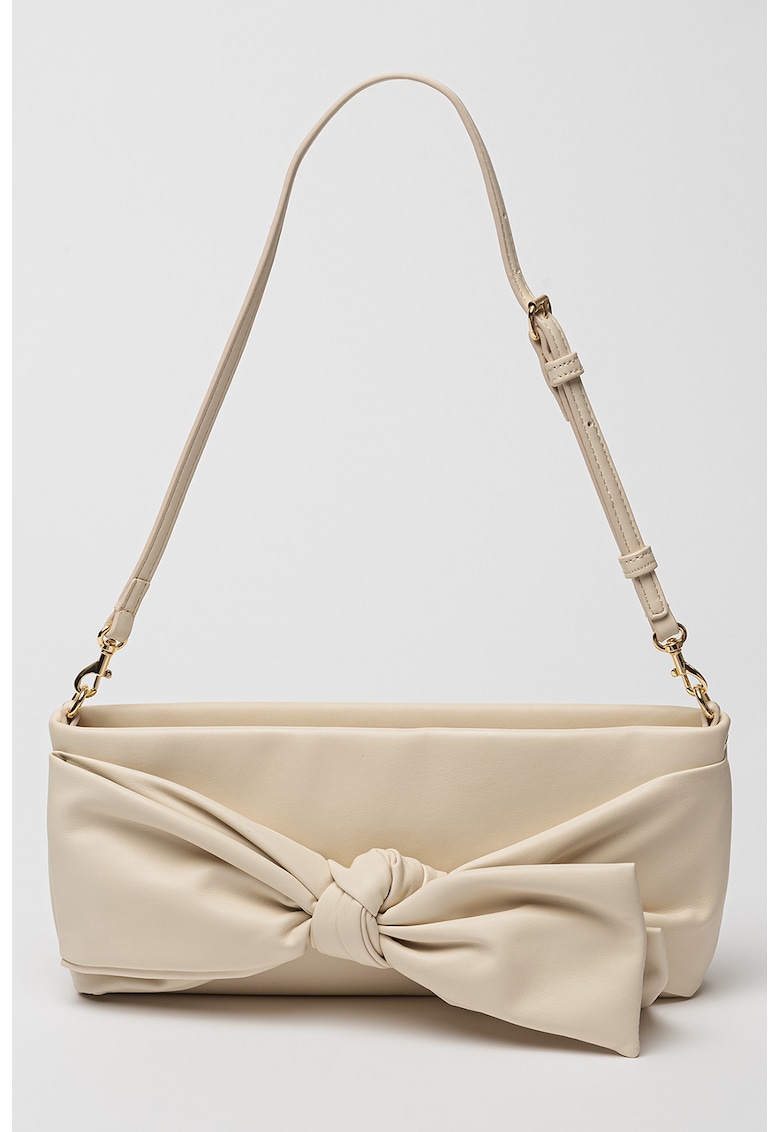 Caracteristici Culoare: alb fildes Material: piele naturala Model: de umar Stil: casual Imprimeu: uni Barete: detasabile si reglabile Compartimente: un compartiment Culoare elemente metalice: argintiu Sistem inchidere: fermoar Detalii: design funda Compozitie Exterior: piele Captuseala: textil Dimensiuni Dimensiune (cm): 13x7x3