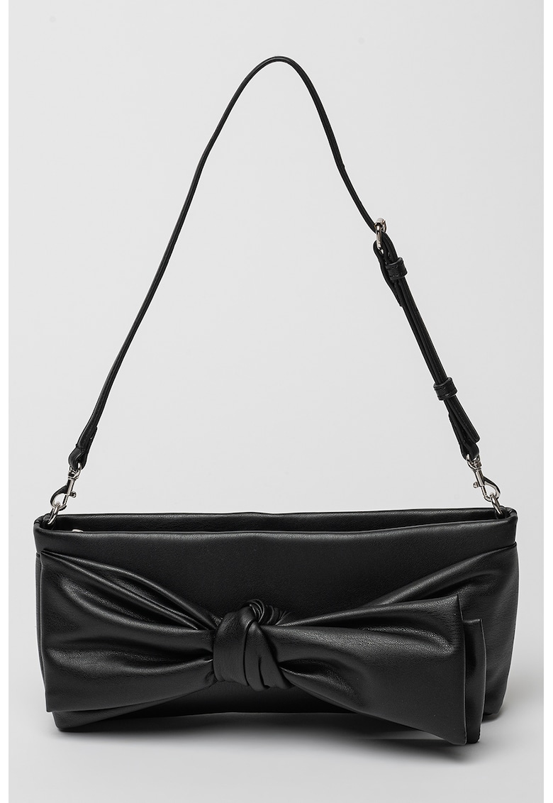 Caracteristici Culoare: negru Material: piele naturala Model: de umar Stil: casual Imprimeu: uni Barete: detasabile si reglabile Compartimente: un compartiment Culoare elemente metalice: argintiu Sistem inchidere: fermoar Detalii: design funda Compozitie Exterior: piele Captuseala: textil Dimensiuni Dimensiune (cm): 13x7x3