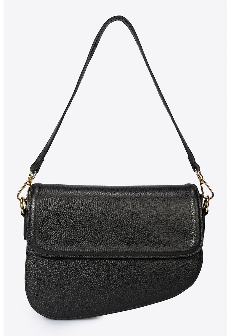 Caracteristici Culoare: negru Material: piele naturala Model: de umar Stil: casual Imprimeu: uni Maner: unul Barete: una Compartimente: 1 Culoare elemente metalice: auriu Sistem inchidere: sistem metalic Compozitie Exterior: piele Dimensiuni Dimensiune (cm): 16x23x9