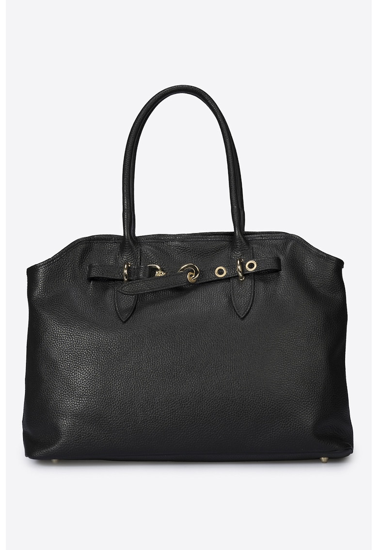 Caracteristici Culoare: negru Material: piele naturala Model: de mana Stil: casual Imprimeu: uni Maner: 2 fixe Compartimente: 1 comaprtiment principal Culoare elemente metalice: auriu Sistem inchidere: fermoar Compozitie Exterior: piele Dimensiuni Dimensiune (cm): 31x48x14