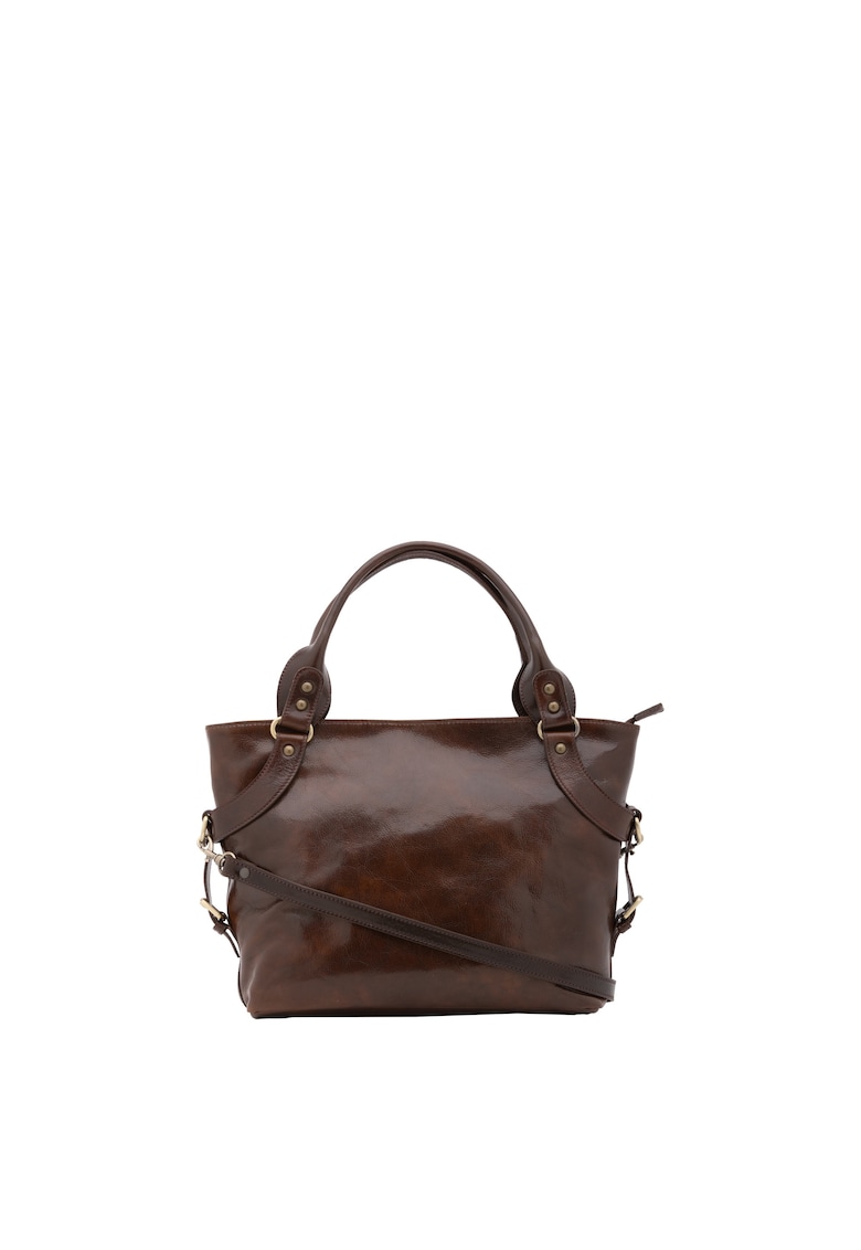 Caracteristici Culoare: maro inchis Material: piele naturala Model: de mana Stil: casual Imprimeu: uni Maner: 2 fixe Barete: ajustabile Buzunare: 2 cu fermoar Compartimente: 1 compatiment principal Sistem inchidere: fermoar Compozitie Exterior: 100% piele veritabila Dimensiuni Dimensiune (cm): 28x43x12