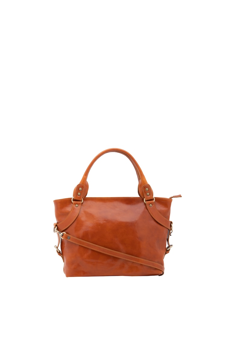 Caracteristici Culoare: maro cognac Material: piele naturala Model: de mana Stil: casual Imprimeu: uni Maner: 2 fixe Barete: 1 ajustabila Compartimente: 1 comaprtiment principal Sistem inchidere: fermoar Compozitie Exterior: 100% piele naturala Dimensiuni Dimensiune (cm): 28x43x12