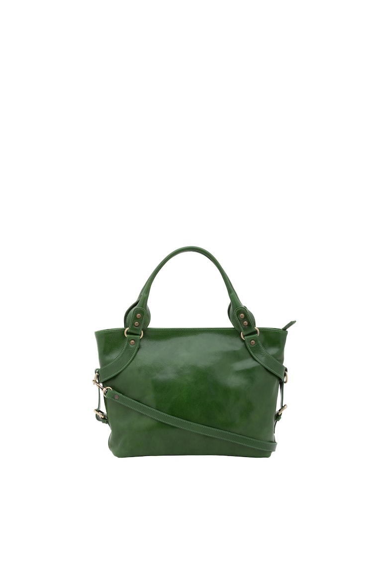Caracteristici Culoare: verde Material: piele naturala Model: de mana Stil: casual Imprimeu: uni Maner: 2 fixe Barete: ajustabile Buzunare: 2 buzunare interioare cu fermoar Compartimente: 1 principal Culoare elemente metalice: verde Sistem inchidere: fermoar Compozitie Exterior: 100% piele veritabila Dimensiuni Dimensiune (cm): 28x43x12