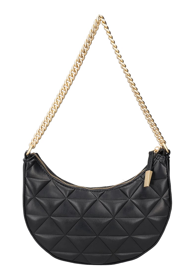 Caracteristici Culoare: negru Material: piele ecologica Model: de umar Stil: casual Imprimeu: uni Maner: lant Barete: ajustabile Buzunare: interior Culoare elemente metalice: auriu Sistem inchidere: fermoar Detalii: aspect matlasat Compozitie Exterior: 100% poliuretan Captuseala: 100% poliester Dimensiuni Dimensiune (cm): 19x25x7.5