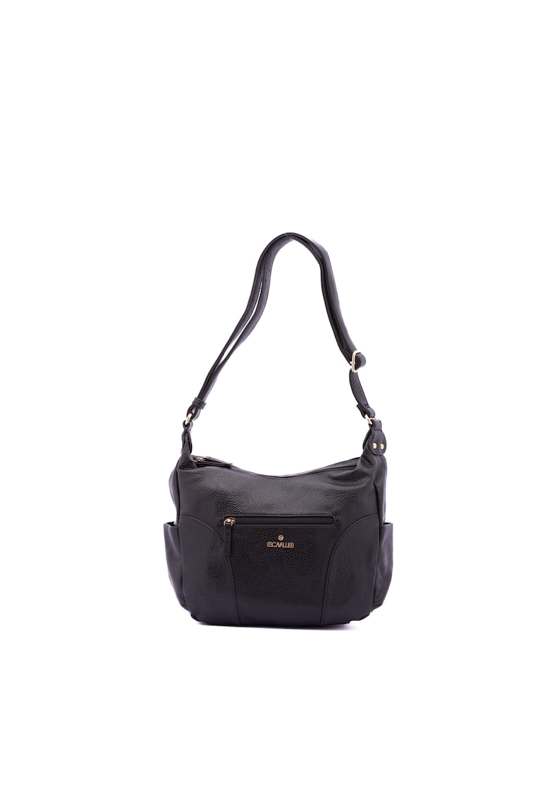 Caracteristici Culoare: negru Material: piele ecologica Model: de umar Stil: casual Imprimeu: uni Barete: ajustabile Buzunare: 2 buzunare exterioare cu fermoar