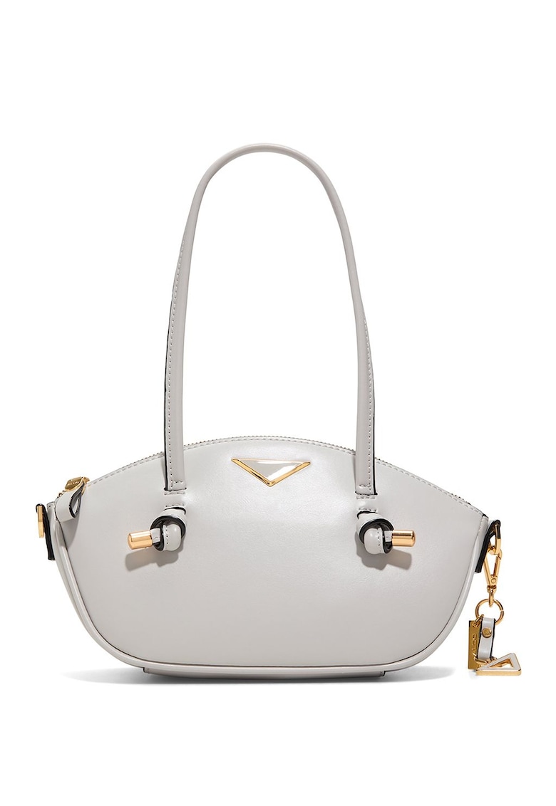Caracteristici Culoare: gri deschis Material: piele ecologica Model: de umar Stil: casual Imprimeu: uni Maner: 2 fixe Barete: ajustabile si detasabile Buzunare: interior Compartimente: un compartiment Culoare elemente metalice: auriu Sistem inchidere: fermoar Compozitie Exterior: 100% poliuretan Captuseala: 100% poliester reciclat Dimensiuni Dimensiune (cm): 14x19x10