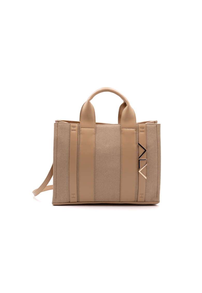 Caracteristici Culoare: bej Material: piele ecologica Model: de umar Stil: casual Imprimeu: logo Maner: 2 fixe Barete: ajustabile Compartimente: 1 compatiment principal Culoare elemente metalice: bej Sistem inchidere: fermoar Compozitie Exterior: 100% poliuretan Captuseala: 100% poliester Dimensiuni Dimensiune (cm): 29x37x13