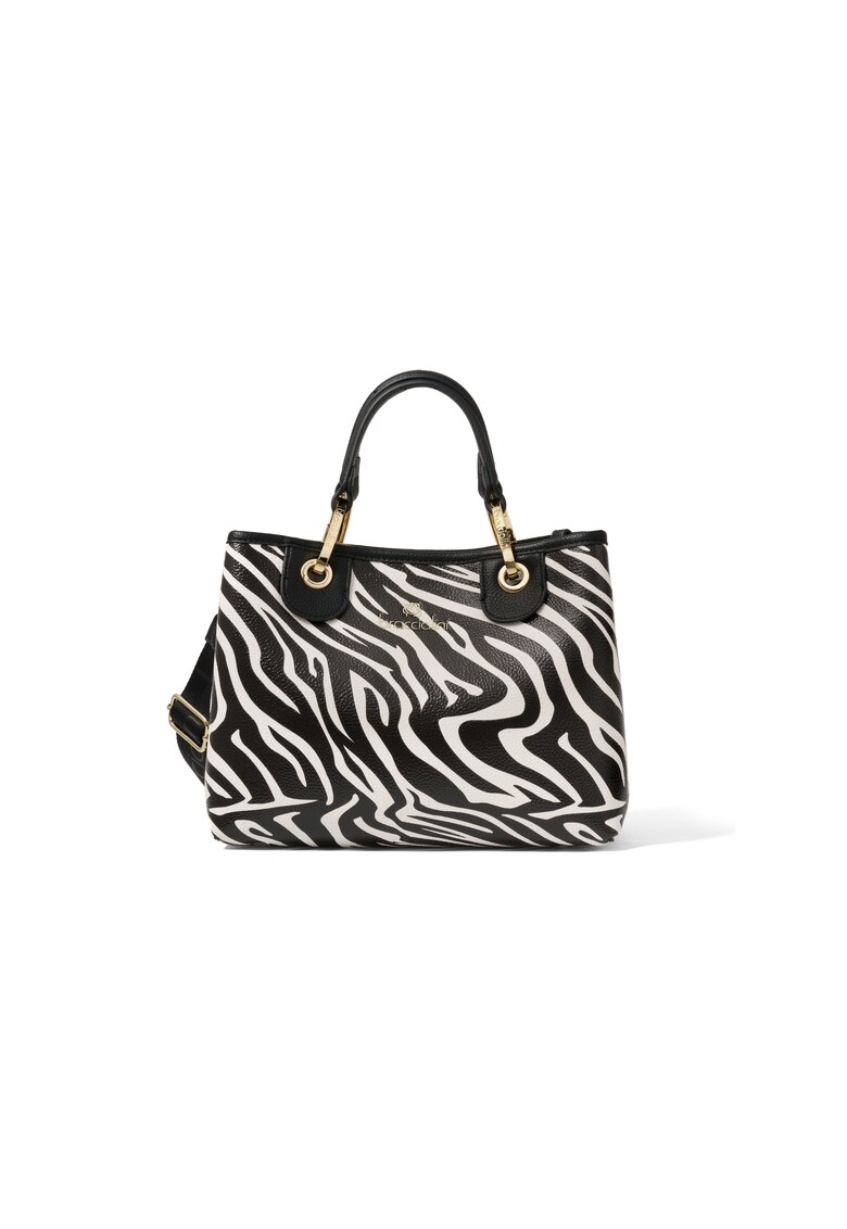 - negru Material: piele ecologica Model: de umar Stil: casual Imprimeu: cu model Maner: 2 Barete: 1 ajustabila Compartimente: 1 Culoare elemente metalice: auriu Sistem inchidere: capse magnetice Compozitie Exterior: poliuretan Captuseala: poliester Dimensiuni Dimensiune (cm): 21.5 x 28 x 13 cm