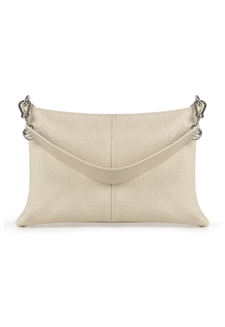 - bej deschis Material: piele ecologica Model: de umar Stil: casual Maner: unul Barete: una Compartimente: 1 Culoare elemente metalice: argintiu Sistem inchidere: fermoar Compozitie Exterior: 100% poliuretan Dimensiuni Dimensiune (cm): universal