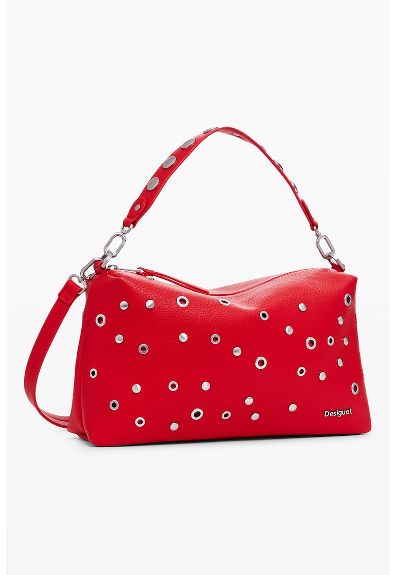 Caracteristici Culoare: rosu Material: piele ecologica Model: de umar Stil: casual Maner: 1 detasabil Barete: 1 detasabila Buzunare: 1 interior Compartimente: unul principal Culoare elemente metalice: argintiu Sistem inchidere: fermoar Compozitie Exterior: material sintetic Dimensiuni Dimensiune (cm): 17x30x11