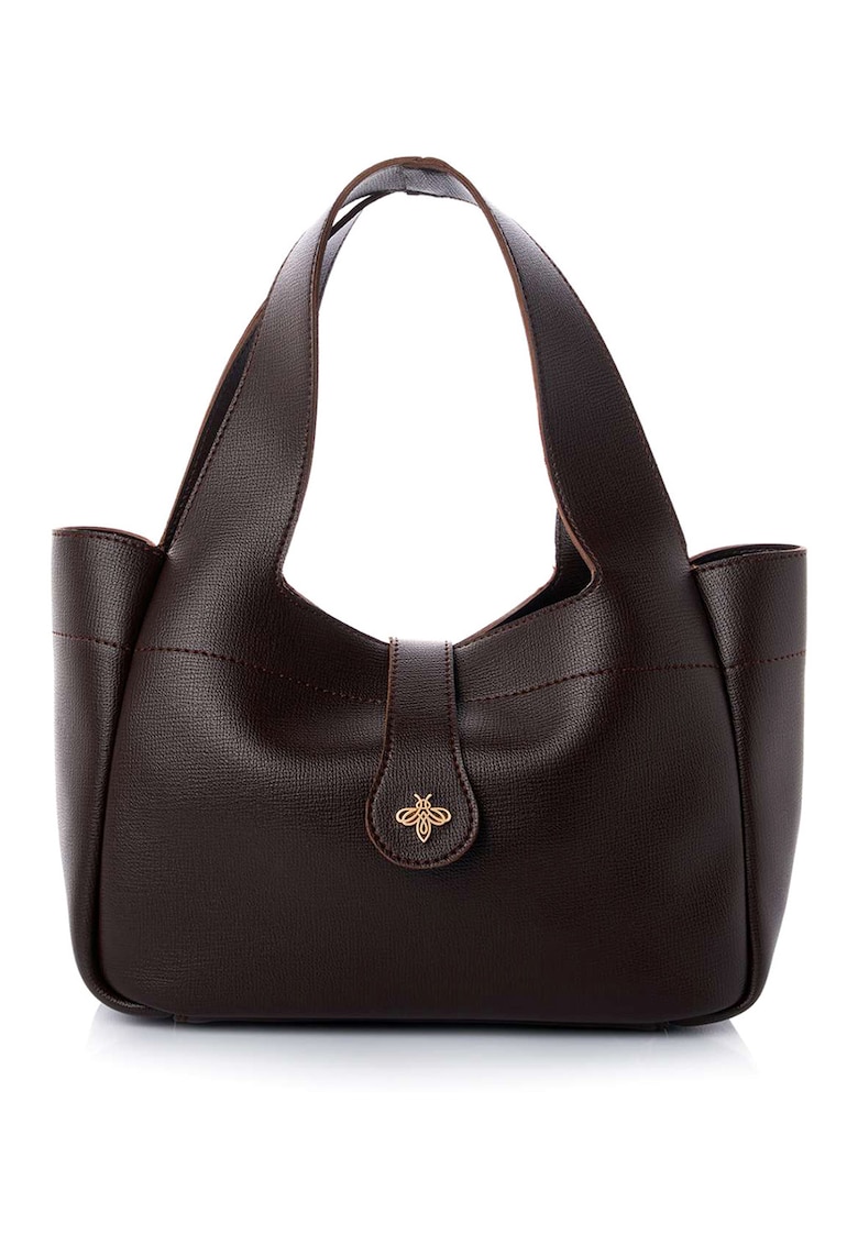 Caracteristici Culoare: maro inchis Material: piele ecologica Model: de umar Stil: casual Imprimeu: uni Maner: 2 fixe Compartimente: 1 compatiment principal Culoare elemente metalice: auriu Sistem inchidere: capse Compozitie Exterior: 100% polivinil Dimensiuni Dimensiune (cm): 21x32x12