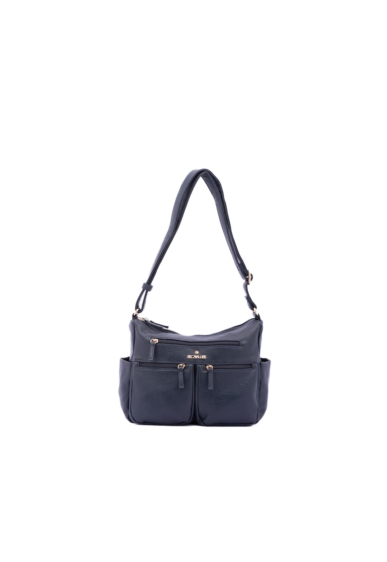 Caracteristici Culoare: bleumarin Material: piele ecologica Model: de umar Stil: casual Imprimeu: uni Barete: ajustabile Buzunare: multiple Compartimente: 2 compartimente Culoare elemente metalice: auriu Sistem inchidere: fermoar Compozitie Exterior: piele ecologica Captuseala: textil Dimensiuni Dimensiune (cm): 21x30x12