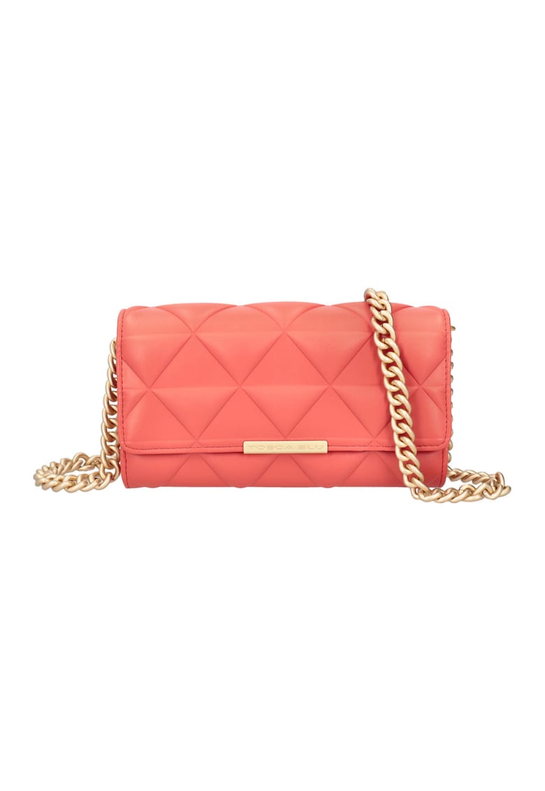 Caracteristici Culoare: coral Material: piele ecologica Model: de umar Stil: casual Imprimeu: uni Barete: lant Buzunare: interior Compartimente: un compartiment Culoare elemente metalice: auriu Sistem inchidere: capse