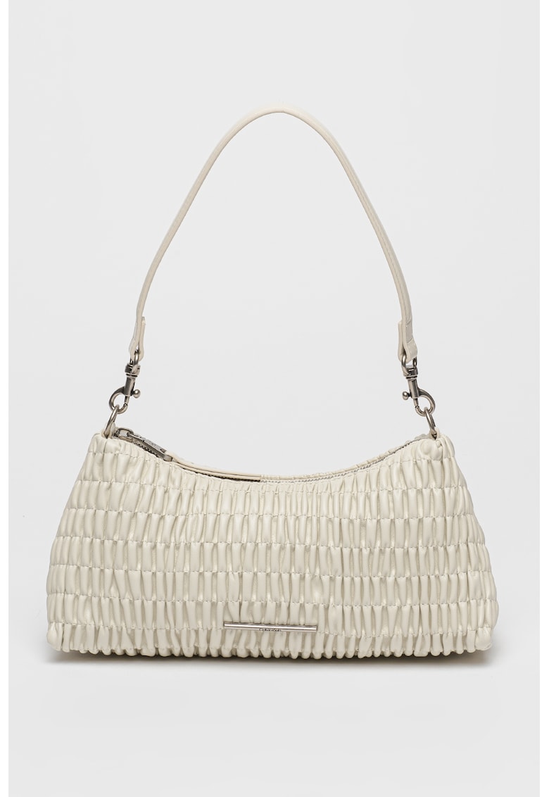 Caracteristici Culoare: alb murdar Material: piele ecologica Model: de umar Stil: casual Maner: detasabil Barete: detasabile Compartimente: unul principal Culoare elemente metalice: argintiu Sistem inchidere: fermoar Compozitie Exterior: material sintetic Dimensiuni Dimensiune (cm): 14x28x9
