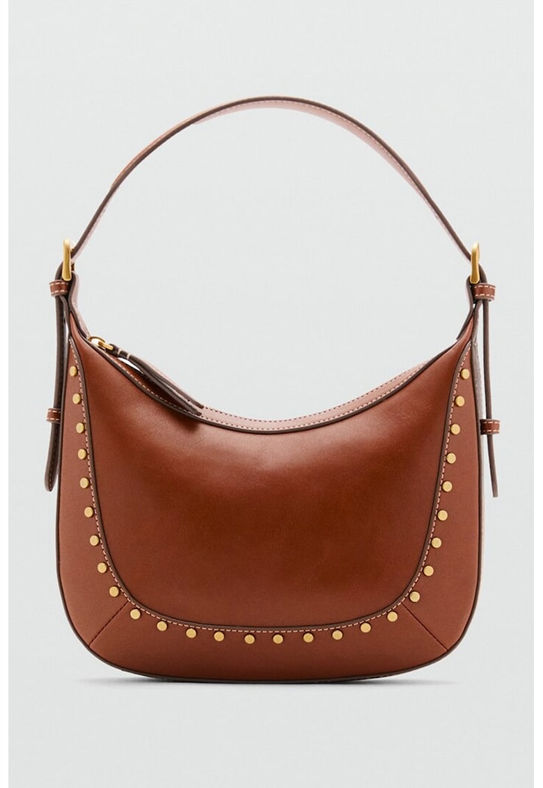 Caracteristici Culoare: maro cognac Material: piele ecologica Model: de umar Stil: casual Imprimeu: uni Compartimente: 1 compartimen Culoare elemente metalice: auriu Sistem inchidere: fermoar Detalii: decorata cu nituri Compozitie Exterior: poliuretan Dimensiuni Dimensiune (cm): 23x26x4