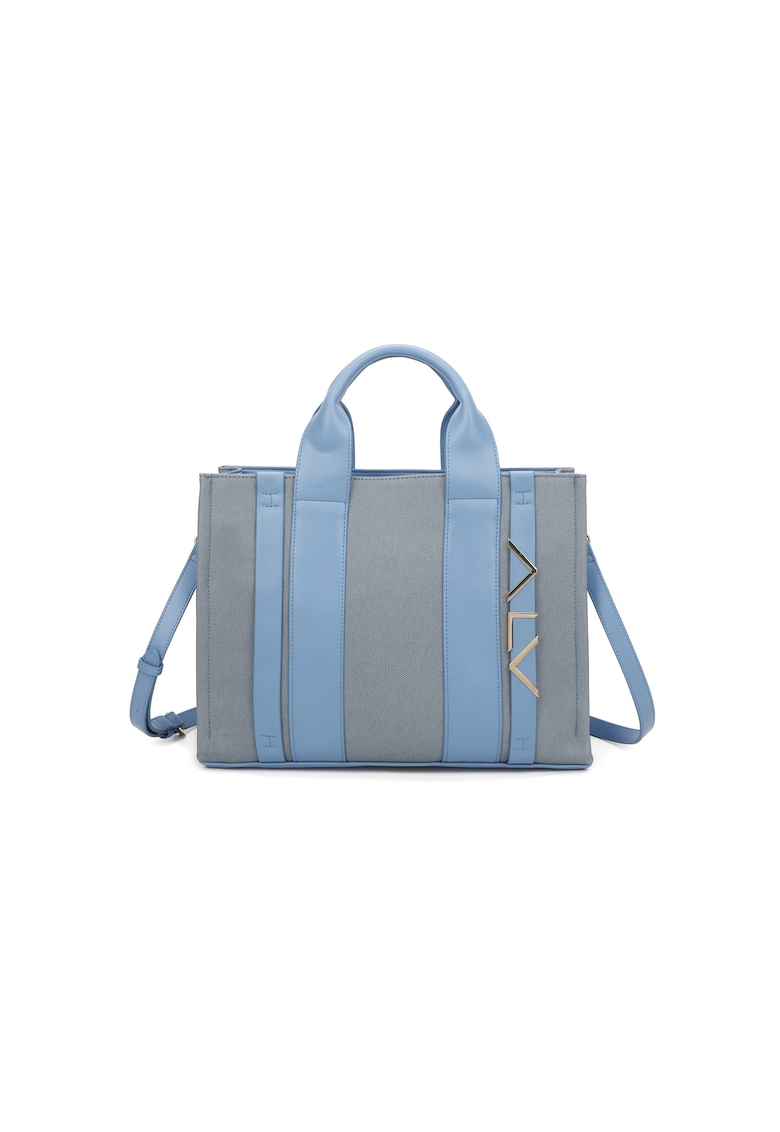 Caracteristici Culoare: albastru Material: denim Model: de mana Stil: casual Imprimeu: logo Maner: 2 fixe Barete: ajustabile Compartimente: 1 principal Culoare elemente metalice: albastru Sistem inchidere: fermoar Compozitie Exterior: 100% poliuretan Captuseala: 100% material textil Dimensiuni Dimensiune (cm): 29x37x13