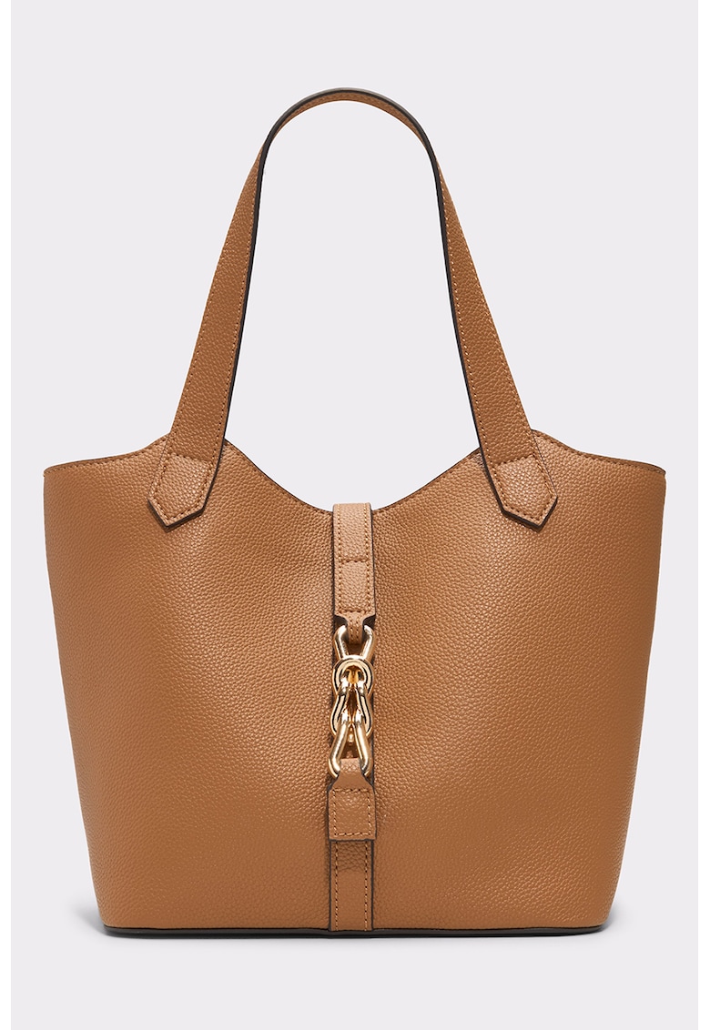 Caracteristici Culoare: caramel Material: piele ecologica Model: de mana Stil: casual Imprimeu: uni Maner: doua Buzunare: interior Compartimente: 1 Culoare elemente metalice: auriu Compozitie Exterior: 100% poliuretan Captuseala: 100% poliester Dimensiuni Dimensiune (cm): 32x39x16