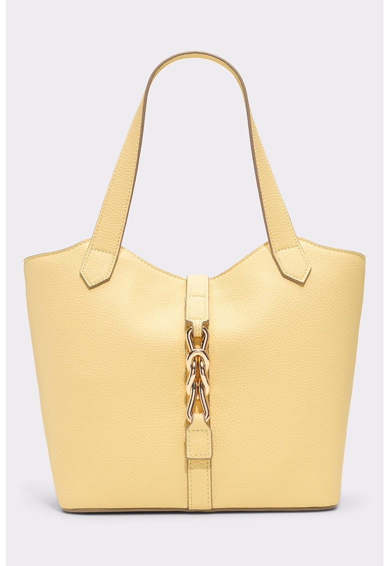 Caracteristici Culoare: galben deschis Material: piele ecologica Model: de mana Stil: casual Imprimeu: uni Maner: doua Buzunare: interior Compartimente: 1 Culoare elemente metalice: auriu Compozitie Exterior: 100% poliuretan Captuseala: 100% poliester Dimensiuni Dimensiune (cm): 32x39x16