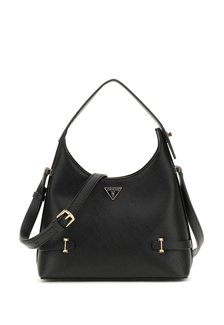 Caracteristici Culoare: negru Material: piele ecologica Model: de mana Stil: casual Imprimeu: logo Maner: 1 ajustabil Barete: 1 ajustabila si detasabila Compartimente: 1 principal Culoare elemente metalice: auriu Sistem inchidere: capse magnetice Compozitie Exterior: 100% poliuretan Dimensiuni Dimensiune (cm): 32 x 24 x 10 cm