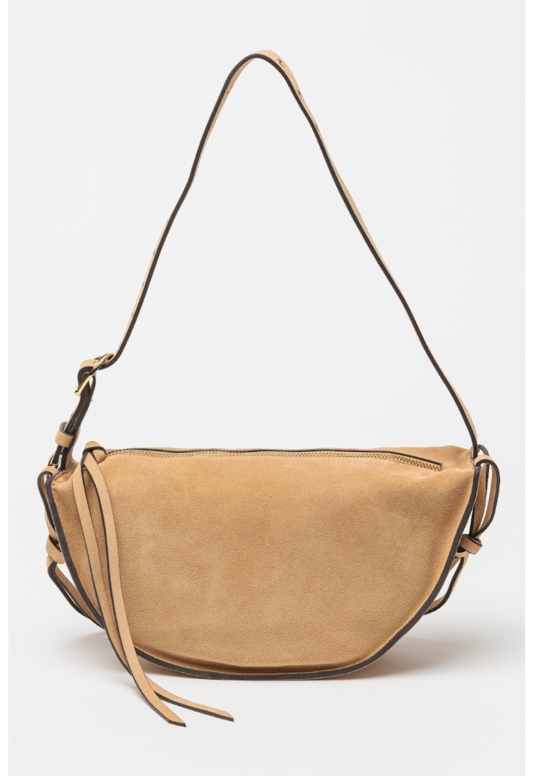 Caracteristici Culoare: maro deschis Material: piele intoarsa Model: de umar Stil: casual Imprimeu: uni Barete: ajustabile Compartimente: 1 principal Culoare elemente metalice: auriu Sistem inchidere: sistem metalic Compozitie Exterior: 100% piele intoarsa Dimensiuni Dimensiune (cm): 17x30x8