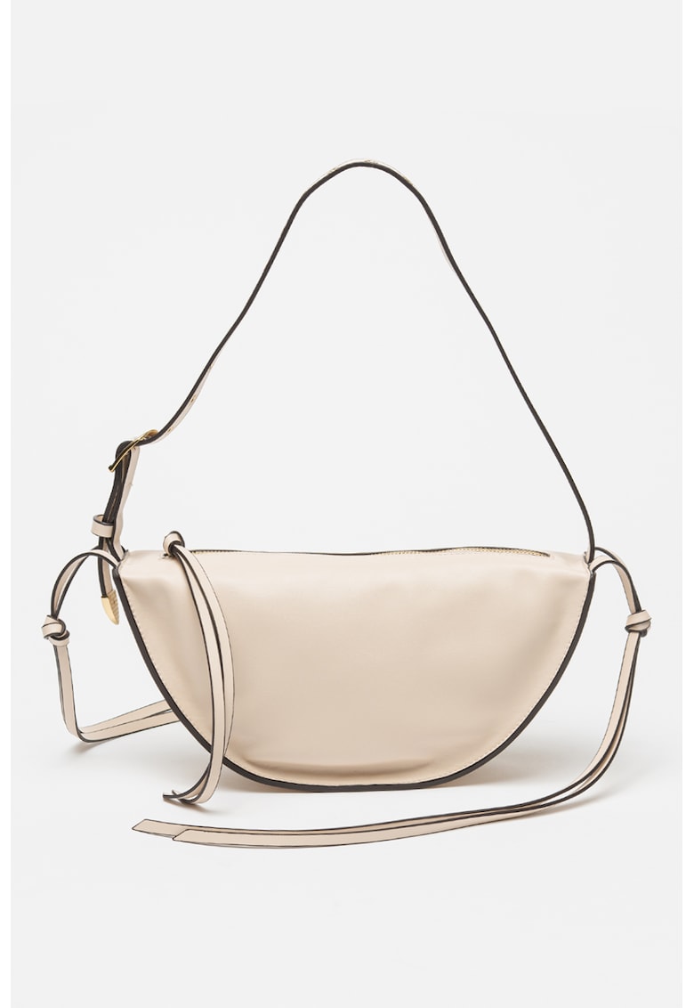 - bej Material: piele intoarsa Model: de umar Stil: casual Imprimeu: uni Barete: ajustabile Compartimente: 1 principal Culoare elemente metalice: auriu Sistem inchidere: fermoar Compozitie Exterior: piele intoarsa Dimensiuni Dimensiune (cm): 17x30x8
