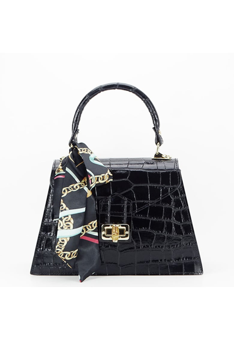 - de mana Stil: elegant Imprimeu: cu model Maner: 1 maner fix Barete: 1 detasabila Buzunare: 1 interior fara inchidere Compartimente: 1 compartiment Sistem inchidere: sistem metalic Detalii: detalii metalice aurii Linie Brand: made in italy Compozitie Captuseala: piele naturala Dimensiuni Dimensiune (cm): 18x28x9 Lungime drop bareta: 115 cm (fix)