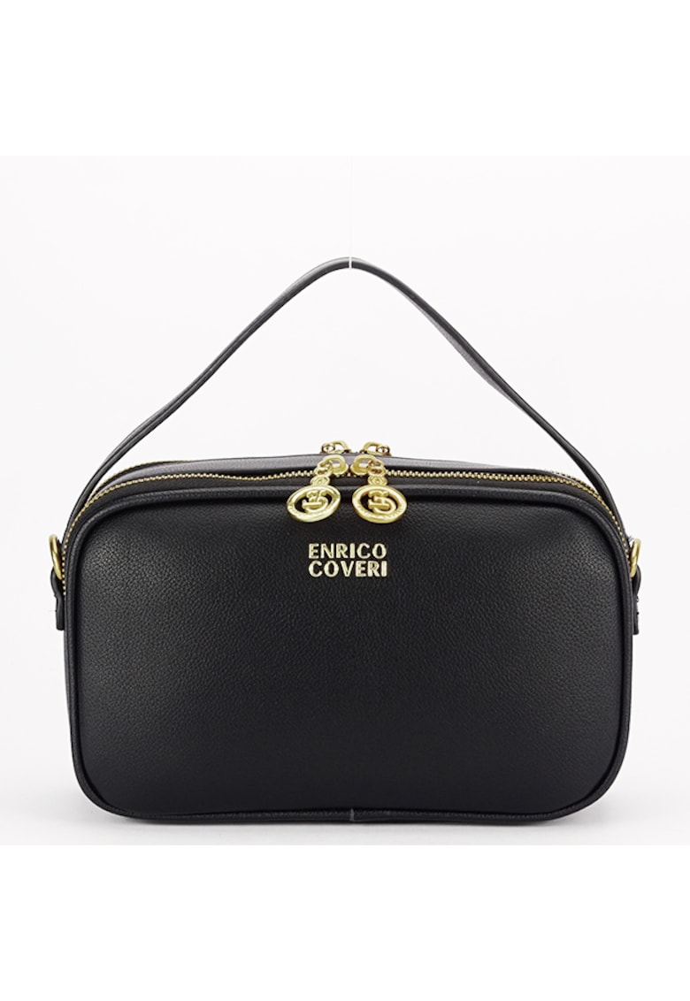 - de mana Stil: casual Imprimeu: uni Maner: 1 maner fix Barete: 1 detasabila Buzunare: 1 interior cu fermoar Compartimente: 1 compartiment Sistem inchidere: fermoar Detalii: detalii metalice aurii Linie Brand: enrico coveri Compozitie Captuseala: material textil Dimensiuni Dimensiune (cm): 14x23x8 Lungime drop bareta: 129 cm (fix)