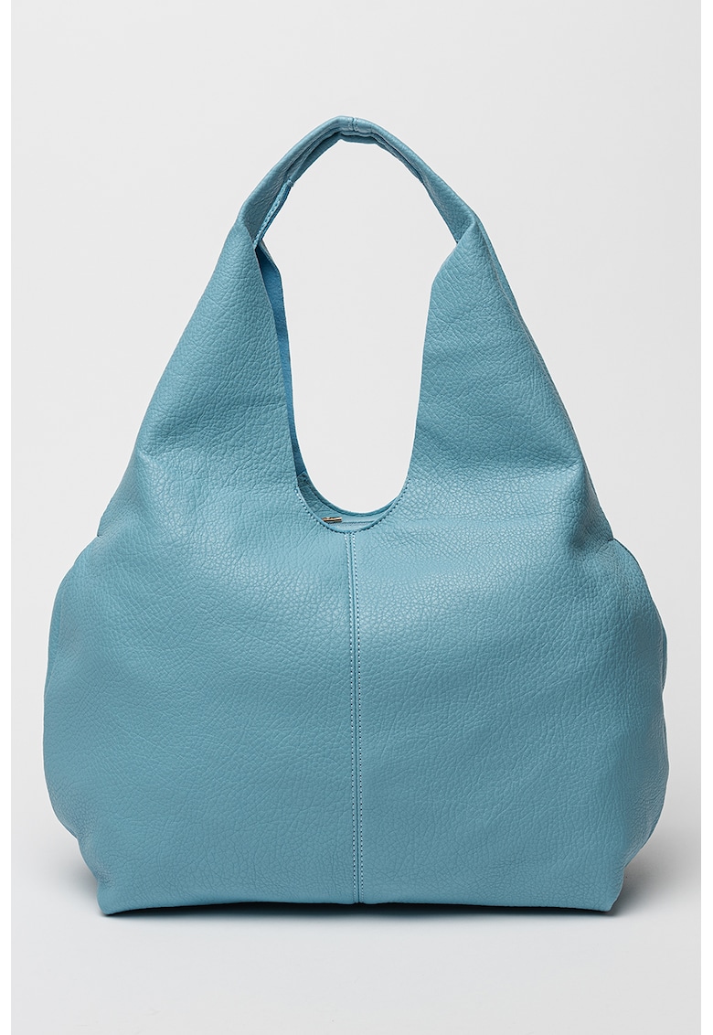 Caracteristici Culoare: albastru pastel Material: piele ecologica Model: de umar Stil: casual Imprimeu: uni Maner: 2 fixe Buzunare: 1 etui detasabil Compartimente: un compartiment Culoare elemente metalice: argintiu Sistem inchidere: fermoar Compozitie Exterior: 100% poliester Captuseala: 100% poliester Dimensiuni Dimensiune (cm): 35x58x14