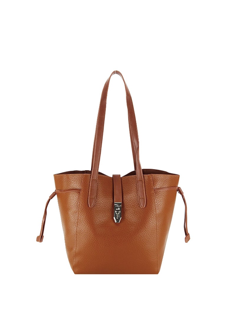 Caracteristici Culoare: maro cognac Material: piele ecologica Model: de umar Stil: casual Imprimeu: uni Maner: 2 manere fixe Buzunare: 1 borseta detasabila Compartimente: 1 compartiment Sistem inchidere: sistem metalic Detalii: detalii metalice argintii Linie Brand: david jones Compozitie Captuseala: material textil