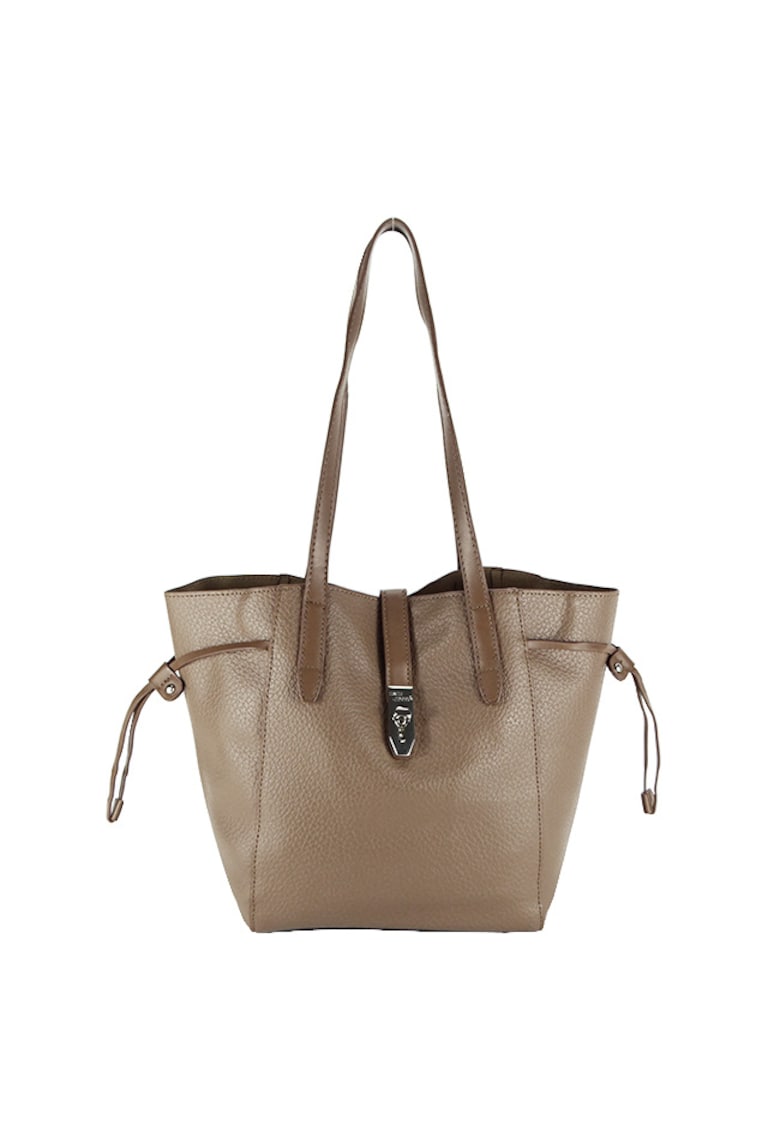 Caracteristici Culoare: maro taupe Material: piele ecologica Model: de umar Stil: casual Imprimeu: uni Maner: 2 manere fixe Buzunare: 1 borseta detasabila Compartimente: 1 compartiment Sistem inchidere: sistem metalic Detalii: detalii metalice argintii Linie Brand: david jones Compozitie Captuseala: material textil