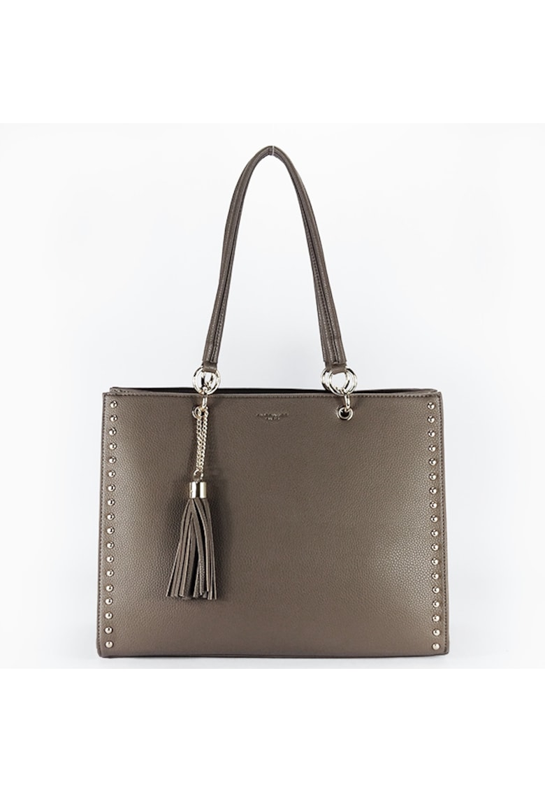 Caracteristici Culoare: maro taupe Material: piele ecologica Model: de umar Stil: casual Imprimeu: uni Barete: 2 nedetasabile Buzunare: 1 exterior cu fermoar