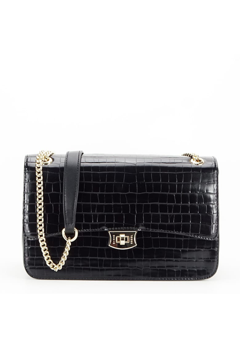 Caracteristici Culoare: negru Material: piele ecologica Model: de umar Stil: casual Imprimeu: cu model Barete: 2 nedetasabila Buzunare: 1 exterior cu fermoar