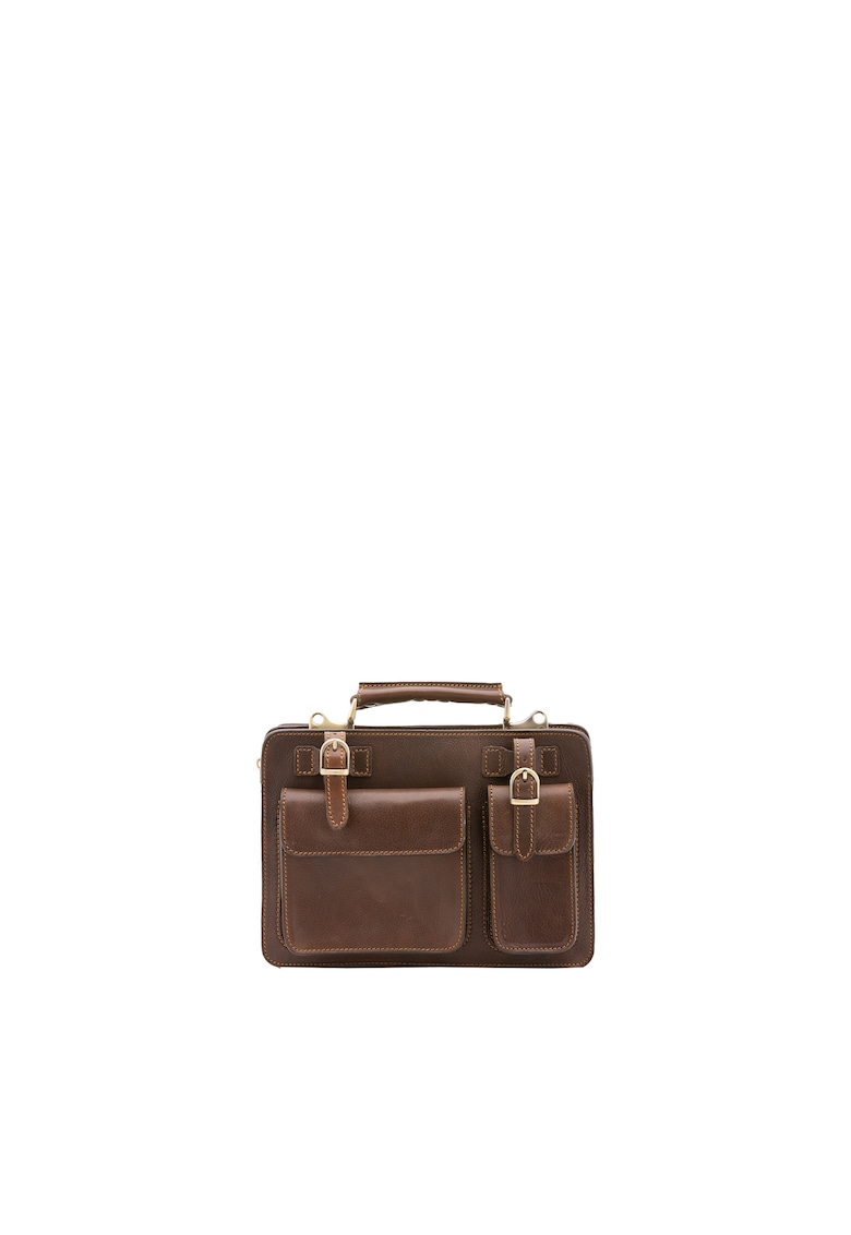 Caracteristici Culoare: maro inchis Material: piele naturala Model: messenger Stil: casual Imprimeu: uni Maner: 1 fix Barete: ajustabile si detasabile Buzunare: multiple Compartimente: 2 compartimente Culoare elemente metalice: auriu Sistem inchidere: fermoar Compozitie Exterior: piele Captuseala: textil Dimensiuni Dimensiune (cm): 23x32x10