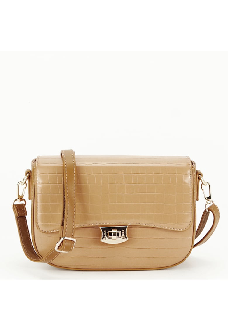 Caracteristici Culoare: camel Material: piele ecologica Model: de umar Stil: casual Imprimeu: cu model Barete: 2 detasabile Buzunare: 1 exterior cu fermoar