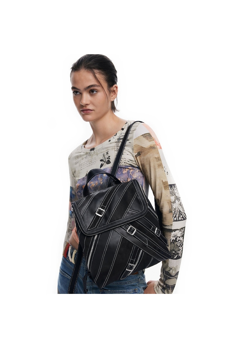 - un buzunar cu fermoar pe capac Barete: ajustabile Maner: unul fix in partea de sus Detalii: model in dungi