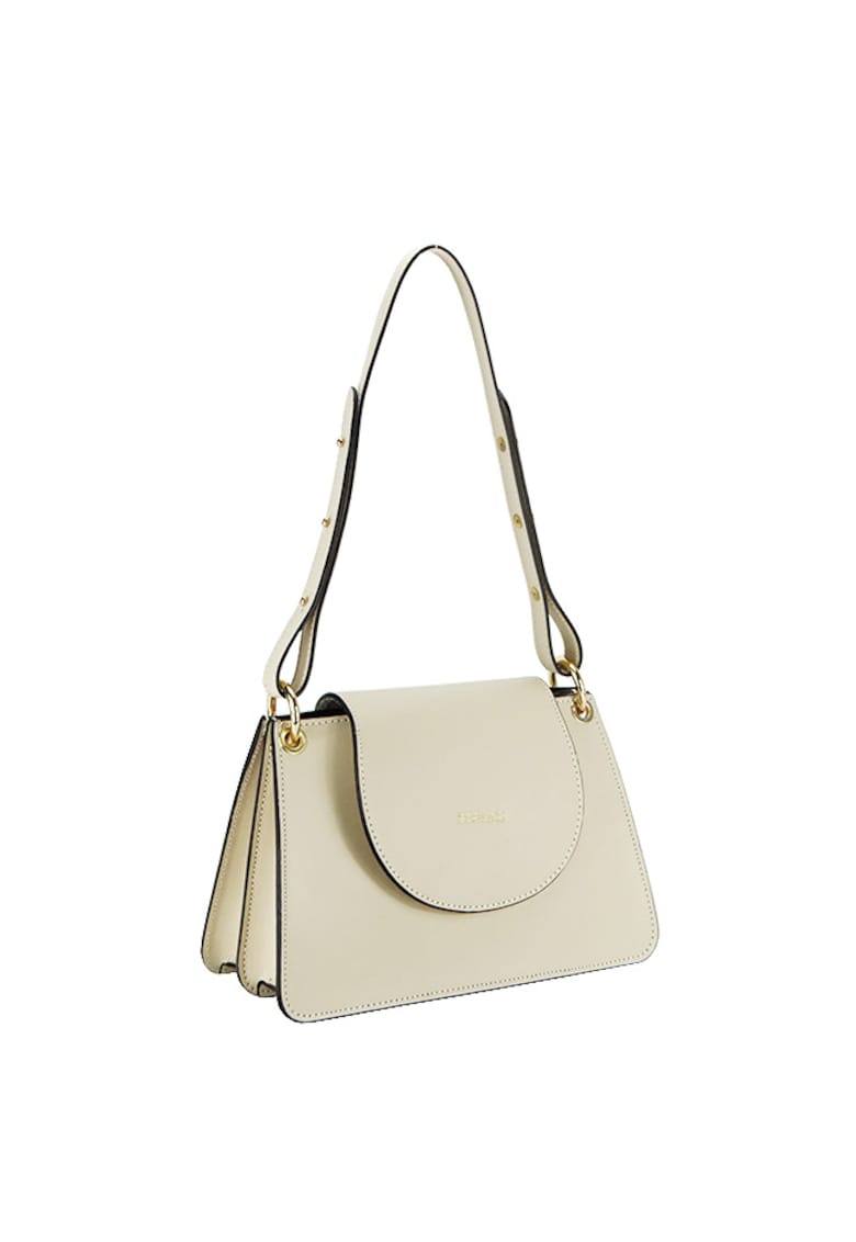 Caracteristici Culoare: crem Material: piele naturala Model: de umar Stil: elegant Imprimeu: uni Barete: 2 detasabile Buzunare: 1 interior cu fermoar Compartimente: 2 compartimente Sistem inchidere: capse magnetice Detalii: detalii metalice aurii Linie Brand: made in italy Compozitie Captuseala: material textil Dimensiuni Dimensiune (cm): 18x28x12 Lungime drop bareta: 114 cm (max) ; 60 cm (fix)