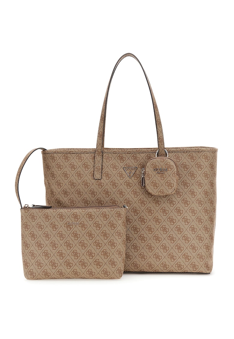 Caracteristici Culoare: maro deschis Material: piele ecologica Model: shopper Stil: casual Imprimeu: logo Maner: 2 fixe Buzunare: un buzunar pe partea din spate Compartimente: unul principal Culoare elemente metalice: auriu Sistem inchidere: fermoar Detalii: 2 portofele detasabile Compozitie Exterior: material sintetic Dimensiuni Dimensiune (cm): 31x49x14
