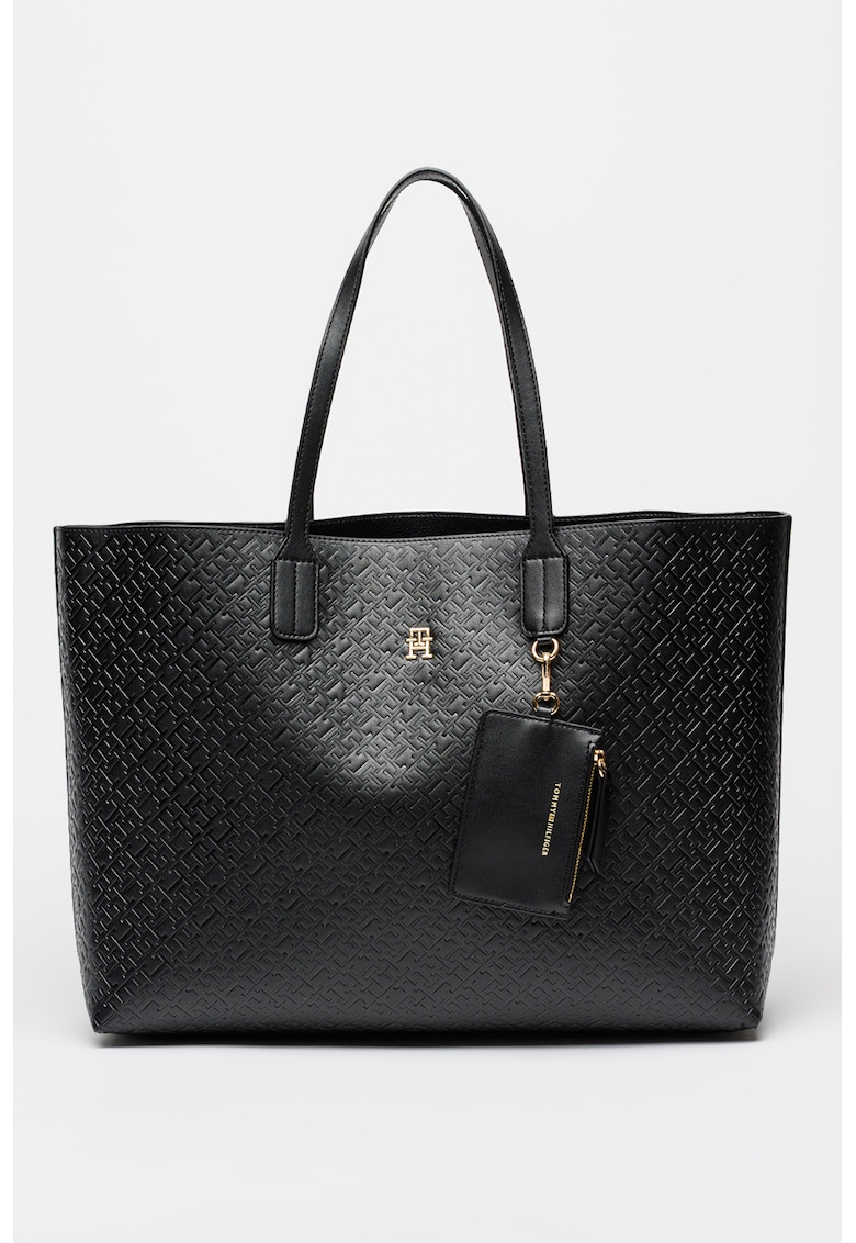 Caracteristici Culoare: negru Material: piele ecologica Model: shopper Stil: casual Imprimeu: logo Maner: 2 fixe Compartimente: 1 principal Culoare elemente metalice: negru Sistem inchidere: fermoar Compozitie Exterior: 100% poliuretan Dimensiuni Dimensiune (cm): 33x42x15 cm