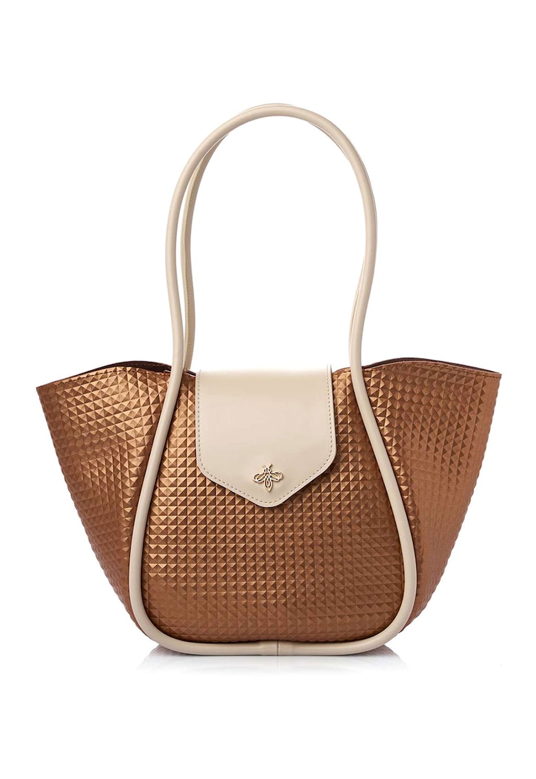 - bej deschis Material: piele ecologica Model: shopper Stil: casual Imprimeu: logo Maner: 2 fixe Compartimente: 1 principal Culoare elemente metalice: auriu Sistem inchidere: sistem metalic Compozitie Exterior: 100% piele de polivinil Dimensiuni Dimensiune (cm): 23x35x11 cm
