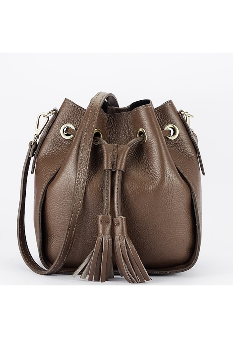 Caracteristici Culoare: maro taupe Material: piele naturala Model: de umar Stil: casual Imprimeu: uni Barete: 1 detasabila Buzunare: 1 interior fara inchidere Compartimente: 1 compartiment Culoare elemente metalice: auriu Sistem inchidere: capse magnetice