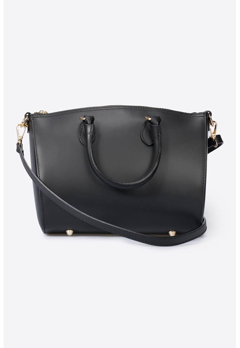 Caracteristici Culoare: negru Material: piele naturala Model: tote Stil: casual Imprimeu: uni Maner: 2 fixe Barete: 1 ajustabila si detasabila Compartimente: 1 Culoare elemente metalice: auriu Sistem inchidere: fermoar Compozitie Exterior: piele Dimensiuni Dimensiune (cm): 21 x 26 x 14 cm