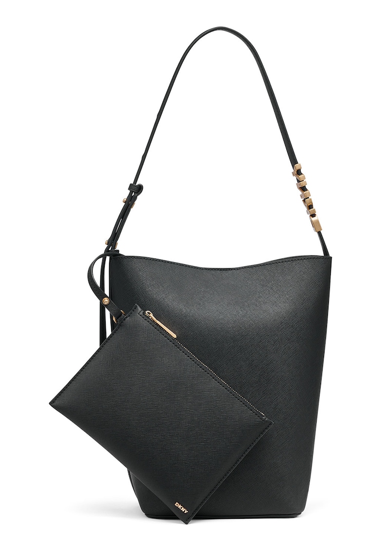 Caracteristici Culoare: negru Material: piele naturala Model: tote Stil: casual Imprimeu: logo Barete: ajustabile Compartimente: 1 principal Culoare elemente metalice: auriu Sistem inchidere: fermoar Detalii: portofel detasabil Compozitie Exterior: 100% piele naturala Dimensiuni Dimensiune (cm): 28x26x15