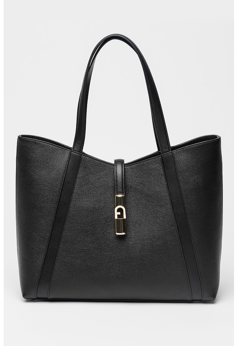 Caracteristici Culoare: negru Material: piele naturala Model: tote Stil: casual Imprimeu: uni Barete: 2 Buzunare: interioare Compartimente: 1 Culoare elemente metalice: auriu Sistem inchidere: sistem metalic Compozitie Exterior: 100% piele Captuseala: 90% poliester