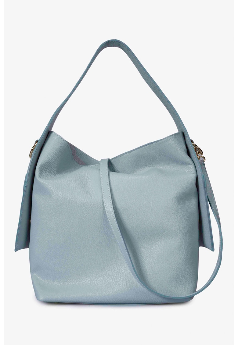 Caracteristici Culoare: albastru pastel Material: piele naturala Model: tote Stil: casual Imprimeu: uni Barete: una
