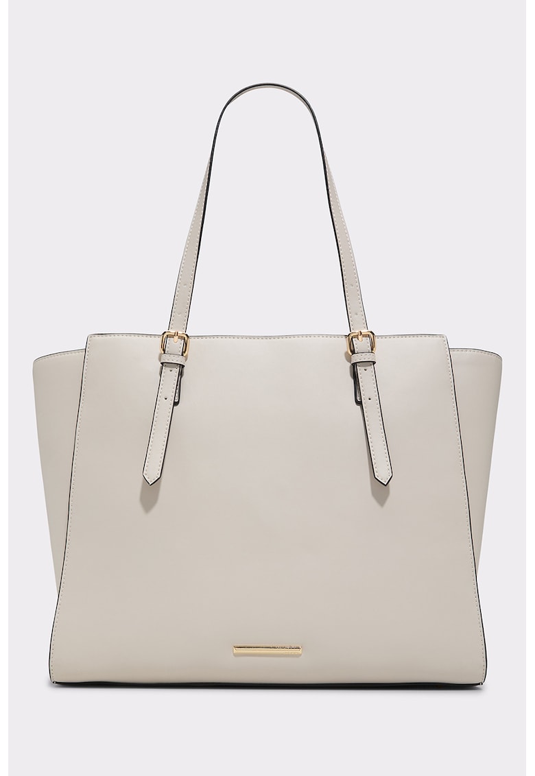 Caracteristici Culoare: alb murdar Material: piele ecologica Model: tote Stil: casual Imprimeu: uni Barete: 2 ajustabile Buzunare: interior Compartimente: un compartiment Culoare elemente metalice: auriu Sistem inchidere: fermoar Compozitie Exterior: 100% poliuretan Captuseala: 100% poliester Dimensiuni Dimensiune (cm): 40x49x16